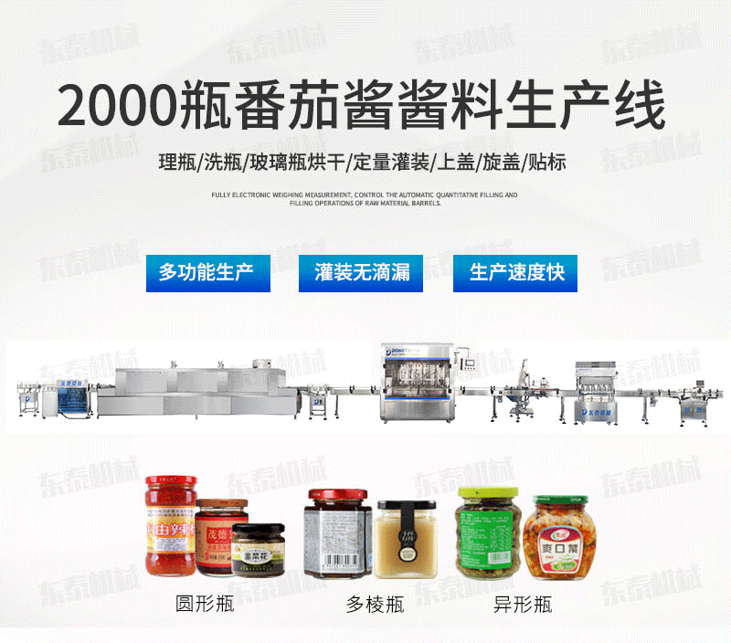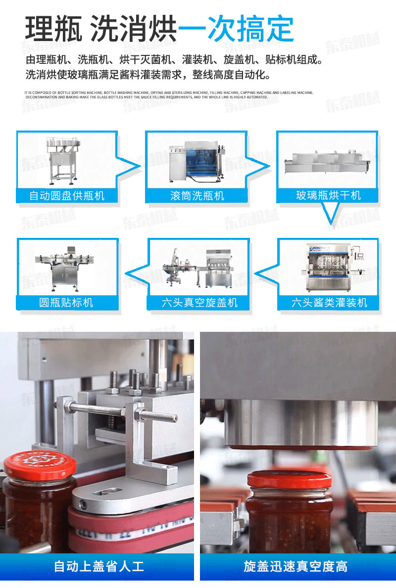 A、番茄醬灌裝機(jī)生產(chǎn)線基礎(chǔ)上進(jìn)行改良設(shè)設(shè)計(jì),醬料防滴防漏灌裝頭,在灌裝過程中不污染瓶口及瓶身,方便后續(xù)的旋蓋和貼標(biāo)工序。