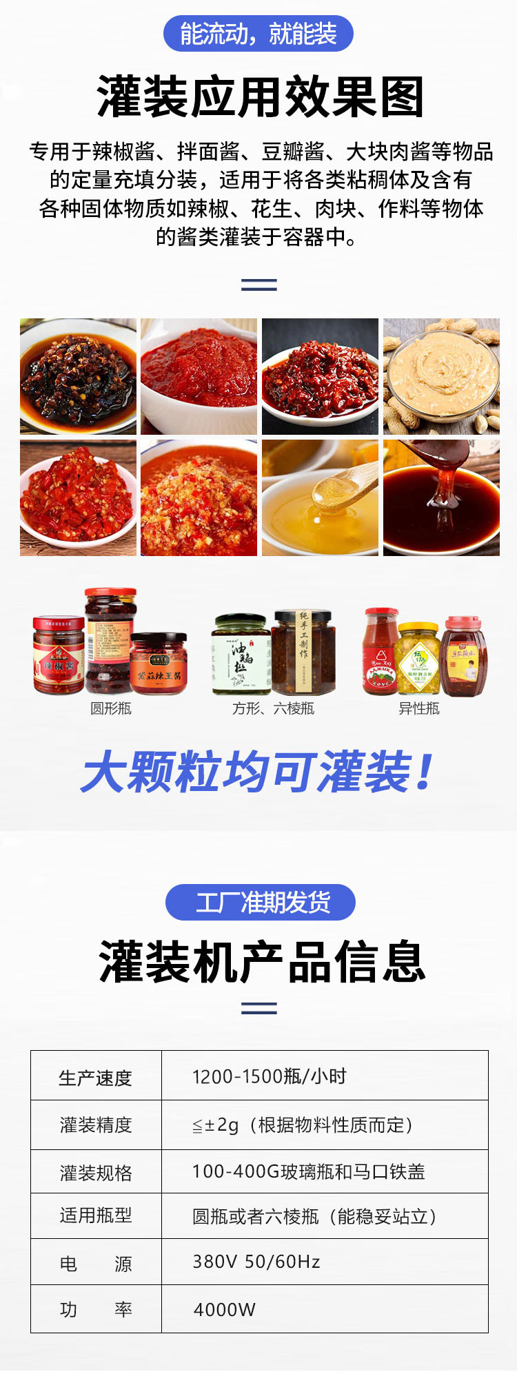 在持續(xù)成長的銷售市場中,蒜蓉醬灌裝機(jī)持續(xù)應(yīng)對各類醬料產(chǎn)品的要開展灌裝生產(chǎn)制造,持續(xù)應(yīng)對產(chǎn)品的要開展自主創(chuàng)新生產(chǎn)制造,進(jìn)而讓各類牛肉醬、辣椒醬、豆瓣醬、火鍋底料完成智能化的生產(chǎn)制造,持續(xù)應(yīng)對市場進(jìn)步向前完成自動(dòng)化生產(chǎn),也讓各地的小吃可以完成遠(yuǎn)距離的運(yùn)送,便捷不一樣地域、不一樣味道的規(guī)定。