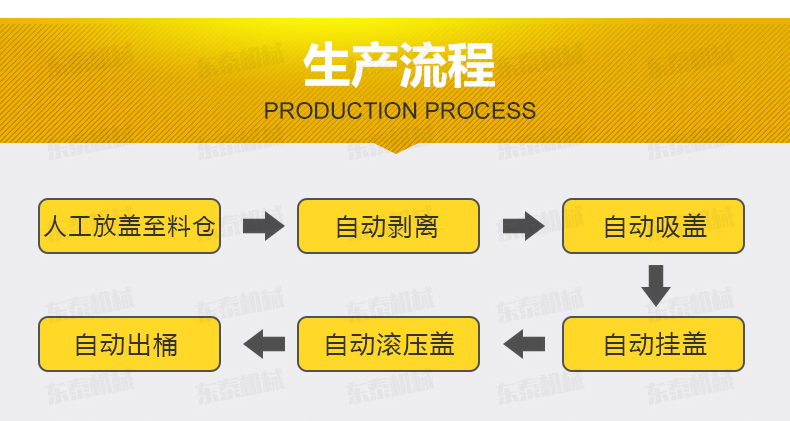 操作:人工放蓋到料倉,機器自動定位、自動落蓋、自動掛蓋、自動滾蓋