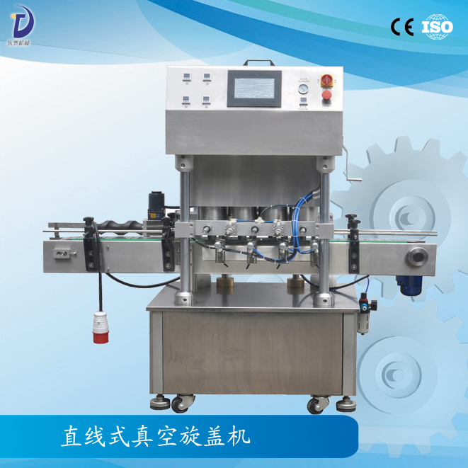 真空旋蓋機一般所指是用于玻璃瓶馬口鐵旋開蓋真空旋蓋包裝的設(shè)備。玻璃瓶口是帶螺旋的,蓋子材質(zhì)通常是馬口鐵,帶有和對應(yīng)瓶口螺紋條數(shù)相等的扣,根據(jù)不同的瓶口直徑標準規(guī)定為三、四、六扣的蓋子,分別配套對應(yīng)數(shù)量螺口玻璃瓶。
