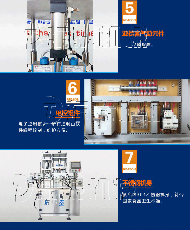 6.旋蓋機構高度可快速調節(jié),可適用相同口徑、不同高度的瓶子旋蓋;更換部分零件即可實現(xiàn)不同瓶徑、不同口徑的旋蓋,更換快捷方便。